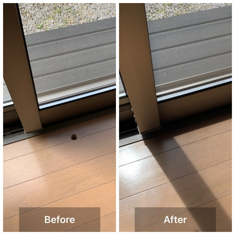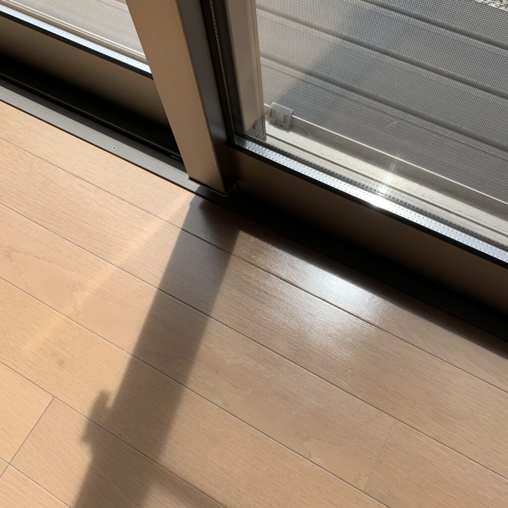 さらに施工箇所が日当たり抜群の掃き出し窓付近で、若干フローリングが日焼けし始めていましたので、日焼けを軽減する保護剤を用いて丁寧に仕上げています。