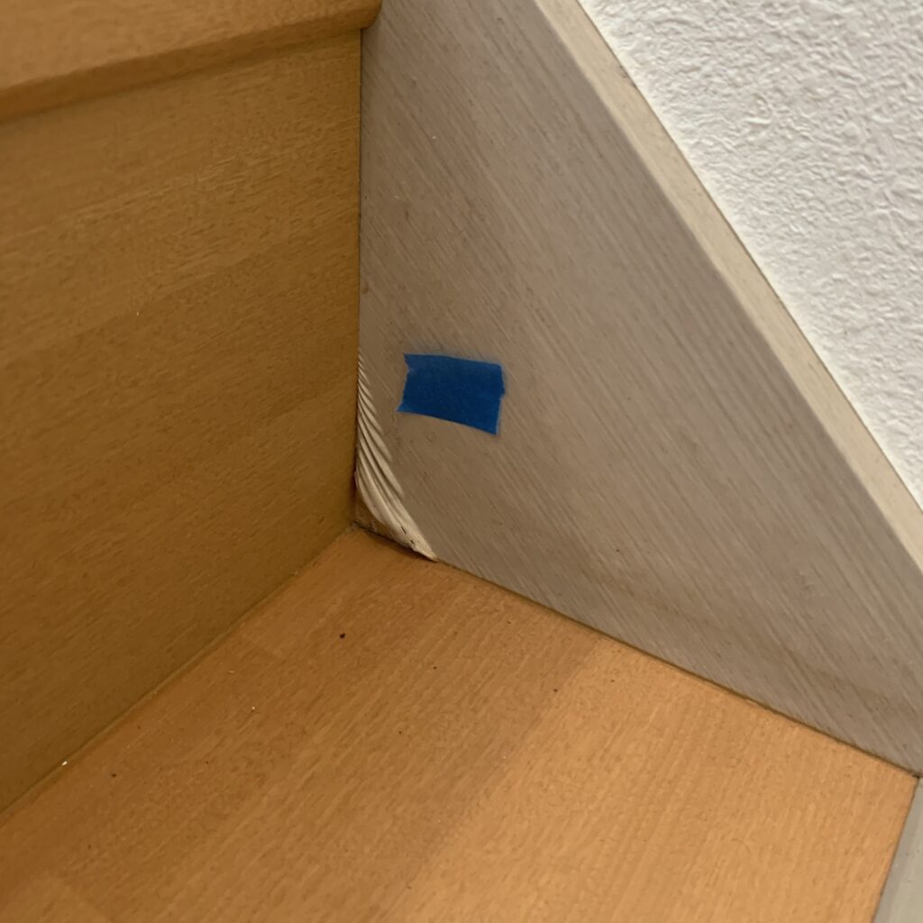 側板に貼り付けてあるシートが何段にもわたってよれてしまっていました。
