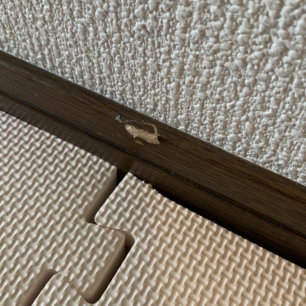 お客様が家具搬入時にぶつけてできてしまった傷でした。