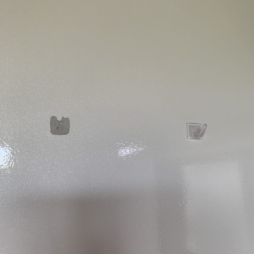 元々キッチンパネルに貼っていたフックを外したところ、パネルの素材ごと一緒に剥がれてしまったとのことでした。