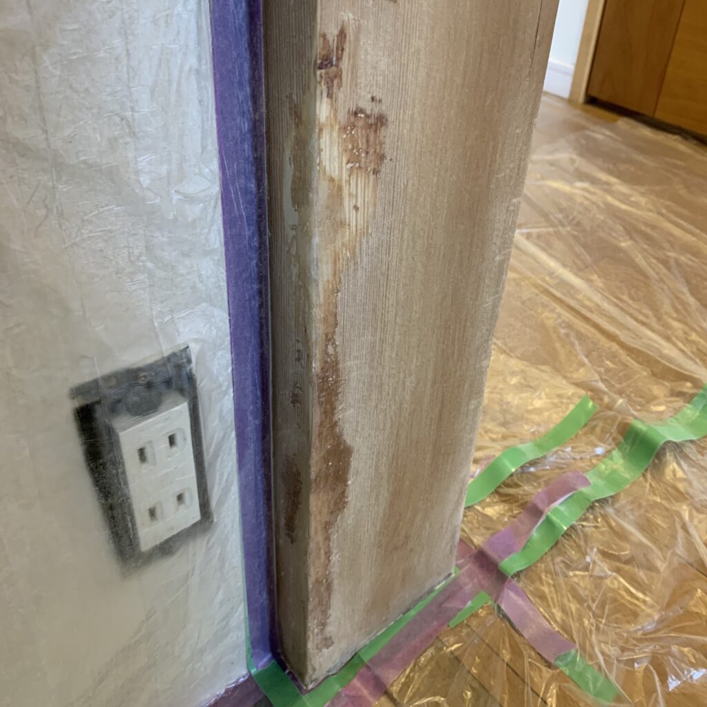 前住居者様で飼われていたペット(犬🐶?猫🐱?)が柱に思いっ切り引っかいた跡があり、柱が無惨な感じになっておりました。