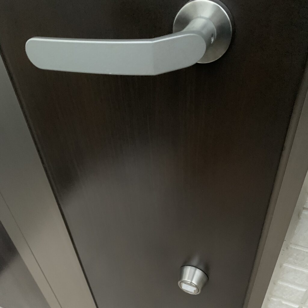 今回は地元工務店様からのご依頼で、新築アパートの玄関ドア補修です。