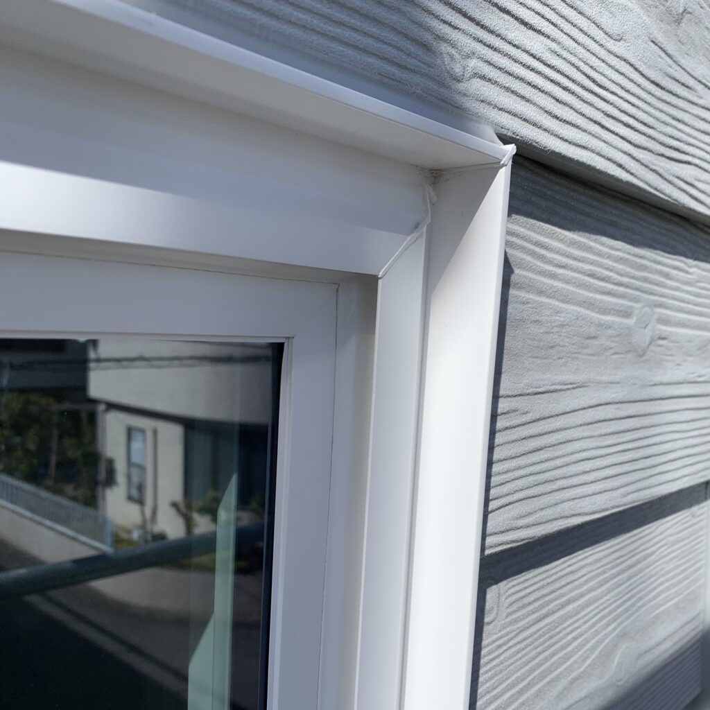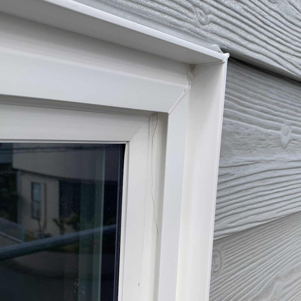 新築一戸建ての2階部分外側窓枠の樹脂サッシに亀裂のようなひび割れが10㎝程度ありました。