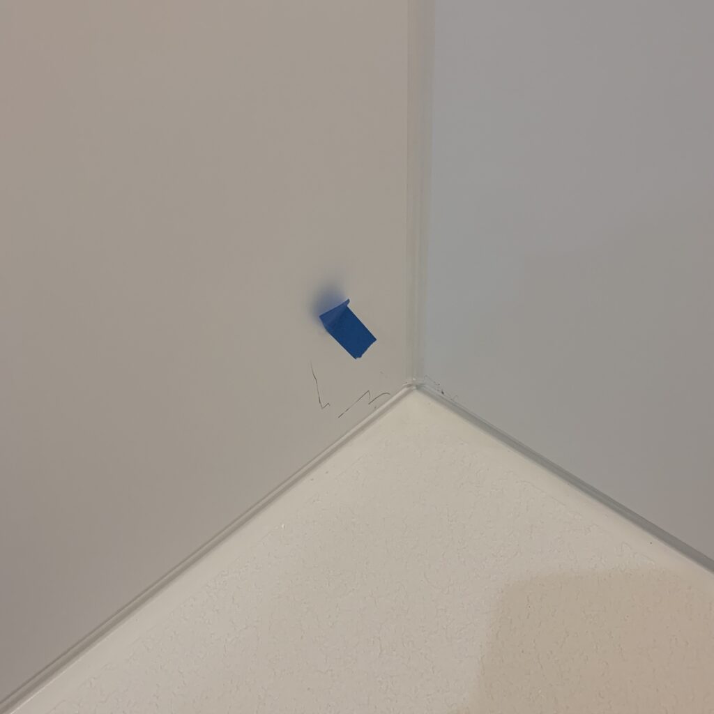 水回りの補修ですので、耐久性の高いパテを使用して平滑にしていくのですが、浴室パネルの下地は金属のため、削り過ぎてしまうと金属部分が出てきてしまい、後の施工がやりにくくなります(壁にマグネットを付けると付きますよね)。