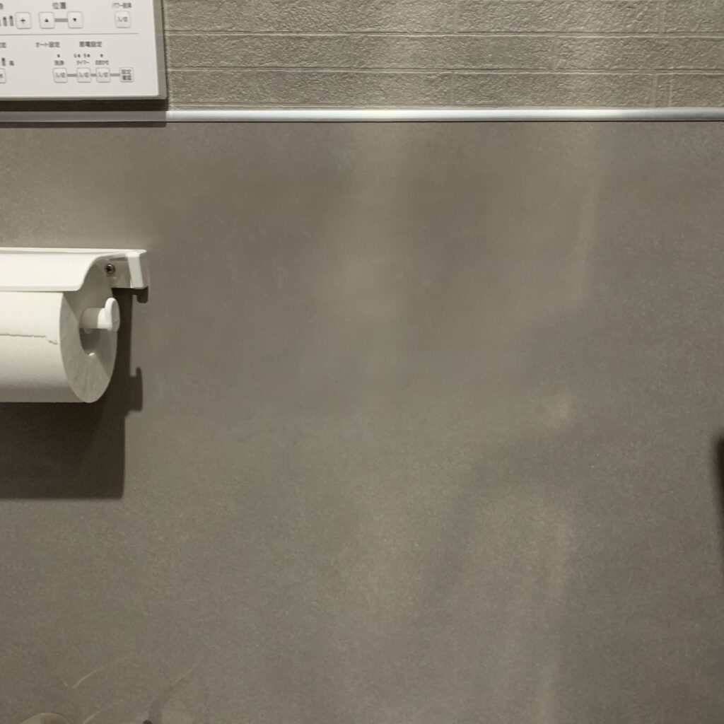 キッチンパネルというのは、写真でも分かる通り艶が非常に高く(左下にトイレットペーパーが写り込んでいます)、とてもツルッとした素材です。