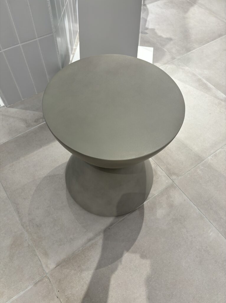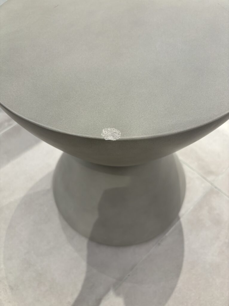 お洒落なスツール(肘掛け・背もたれのない椅子)を搬入時にぶつけてしまったようで、一部が欠けてしまっておりました。