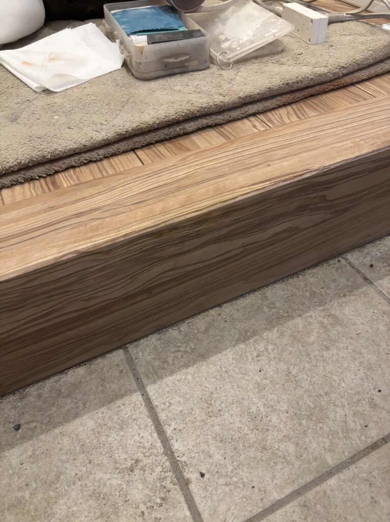 可能な限り剥がれていた箇所を接着し直してから、平滑に戻し、着色して完了です。